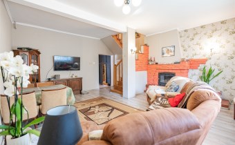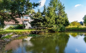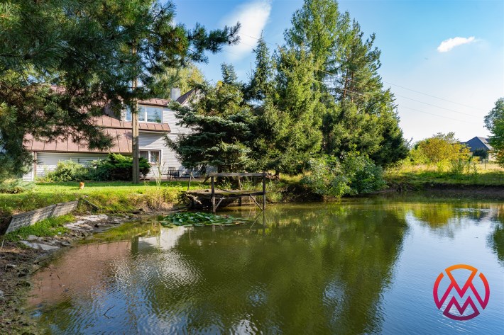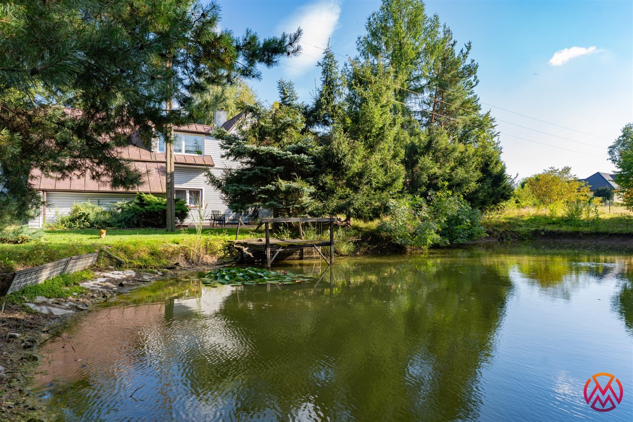 DOM W OTOCZENIU ZABUDOWY JEDNORODZONNEJ Z TRZEMA SYPIALNIAMI, GARAŻEM DWUSTANOWISKOWYM I WŁASNYM STAWEM
