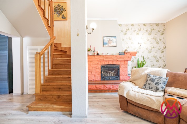Dom składa się z dwóch poziomów. Łączna projektowana powierzchnia użytkowa pomieszczeń wynosi 145 m2. Na parterze zaaranżowano część wspólną, na którą przypada przestronny salon z wejściem na na piętro kuchnie z jadalnią, wyjście na taras oraz łazienkę. Na piętrze, przewidziano trzy sypialnie. Okna domu wychodzą na wschód i zachód. Dodatkowym atutem jest dwustanowiskowy garaż w bryle budynku.