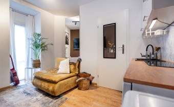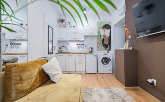 Lokal mieści się na parterze oficyny, co gwarantuje prywatność i ciszę, mimo ścisłego centrum miasta. Wnętrze zostało starannie wykończone – mieszkanie jest po generalnym remoncie, z wymienionymi instalacjami i wszystkimi mediami miejskimi, w tym centralnym ogrzewaniem.