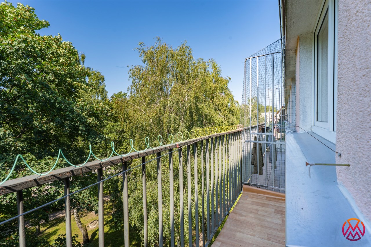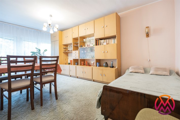 Składa się z dwóch oddzielnych pokoi, oddzielnej kuchni, łazienki razem z WC oraz przedpokoju. Całość stanowi ponad 45 m2, do tego dodatkowo dwie komórki lokatorskie o pow. Ok. 2 m2. Salon z wystawą zachodnią, zaś kuchnia i drugi pokój - wystawa wschodnia. Mieszkanie posiada miejsce na bardzo dużą szafę w przedpokoju. Lokal do remontu, bądź do własnego umeblowania.