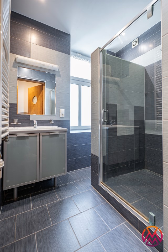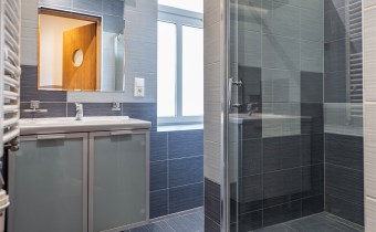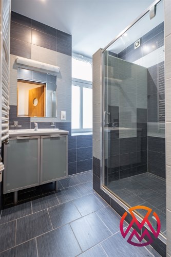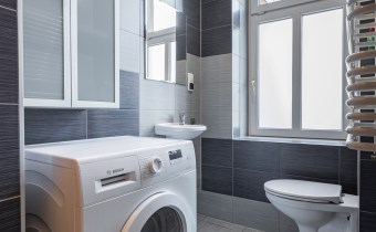 - na podłodze w pokojach deska, w łazienkach, kuchni oraz przedpokoju terakota,