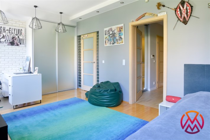 - Poziom 1 - sypialnia z własną łazienką (prysznic, umywalka, WC), sypialnia z wyjściem na balkon (10 m2), sypialnia, główna łazienka (wanna z hydromasażem, prysznic, toaleta, umywalka), pralnia z kotłownią.