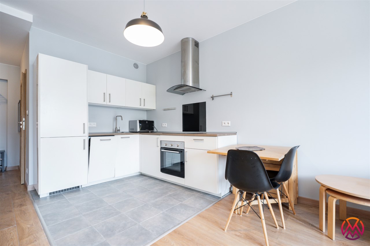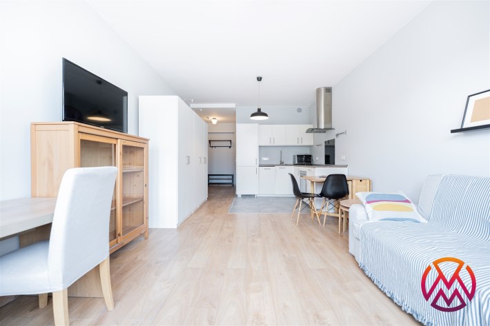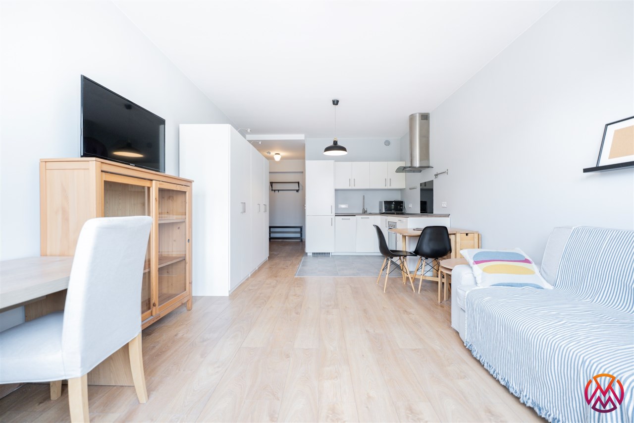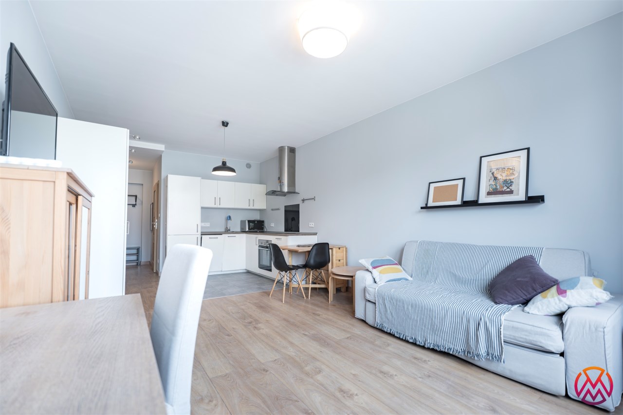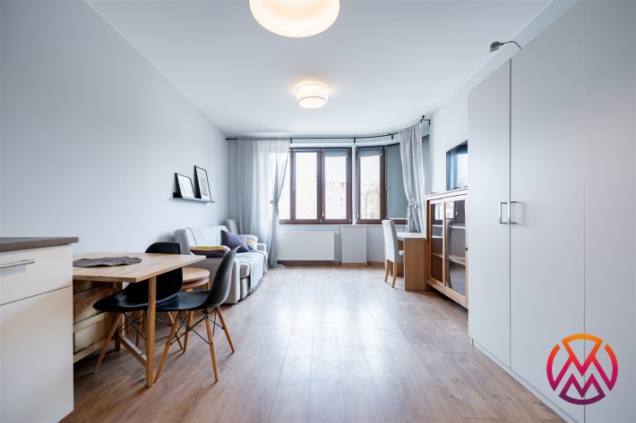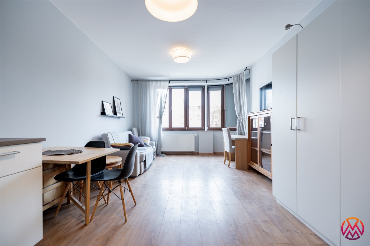 Mieszkanie o powierzchni ok. 34 m2całkowicie odnowione, tak jak cały budynek, składa się z dużego pokoju z aneksem kuchennym oraz łazienki z wraz WC. Mieszkanie posiada designerskie, zaokrąglone okna co sprawia, iż staje się ona świetnie doświetlona oraz daje wrażenie większej przestrzeni.