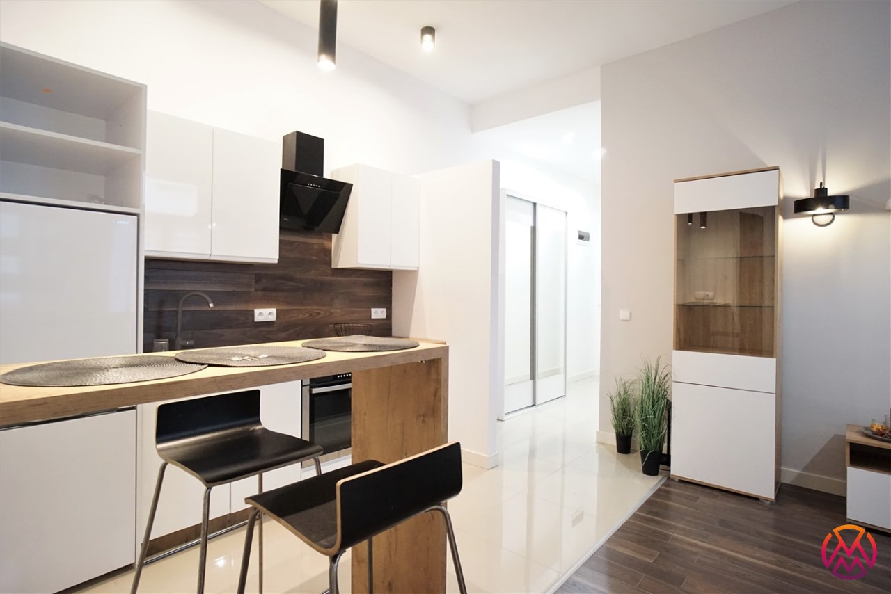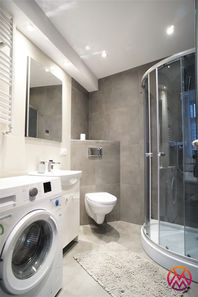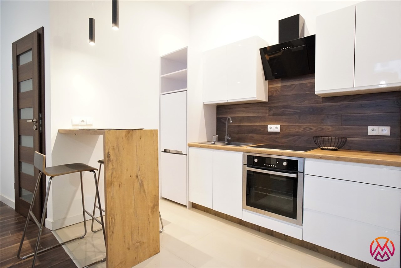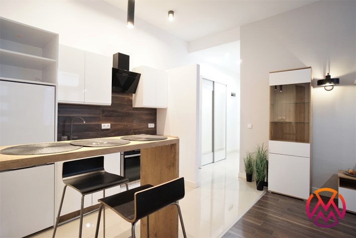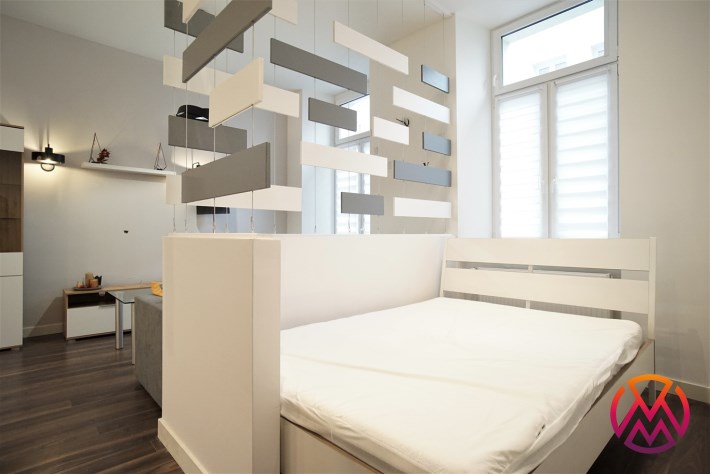 Kawalerka po remoncie, wszystkie meble oraz sprzęty nowe. W pełni umeblowana - w pokoju znajdziemy wygodną kanapę rogową, komodę, szafę, stolik z krzesłem. Aneks wyposażony w niezbędne sprzęty - lodówko zamrażarka, płyta indukcyjna, piekarnik, zlewozmywak z baterią. W łazience prysznic, pralka, umywalka, WC, szafka. Mieszkanie wykończone w nowoczesny sposób, z zachowaniem jasnej, neutralnej kolorystyki. Mieszkanie posiada duże okna z ekspozycją na wschód.