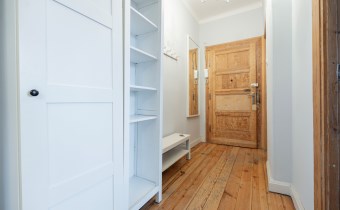 - Przedpokój: znajdziemy w nim szafę na ubrania oraz buty.