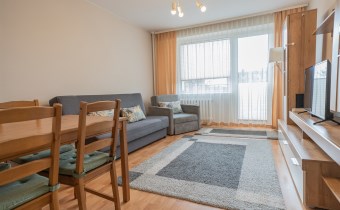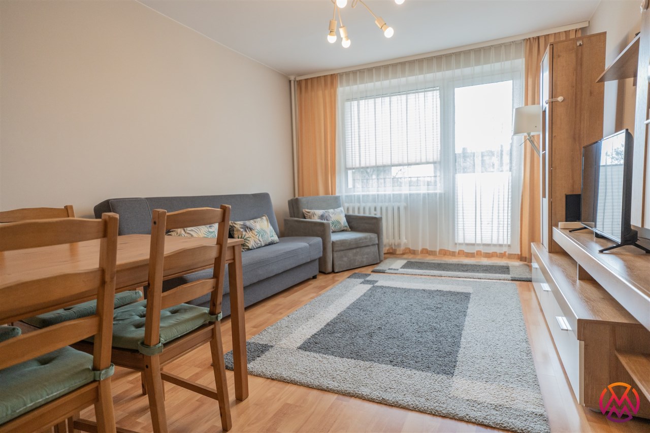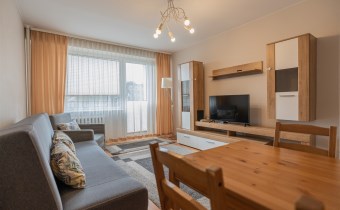 W pełni wyposażone - w salonie znajduje się rozkładana kanapa, fotel, stół z krzesłami, szafka RTV oraz telewizor. Sypialnia posiada podwójne łóżko z materacem, szafki nocne, komodę oraz telewizor. Kuchnia wyposażone w pełną zabudowę kuchenną, lodówkę, kuchenkę gazową z piekarnikiem oraz zlewozmywak z baterią. Łazienka z wanną, pralką, WC oraz umywalką. W przedpokoju znajduje się pakowna szafa w zabudowie. Dodatkowo każde okna posiadają żaluzje bądź rolety.