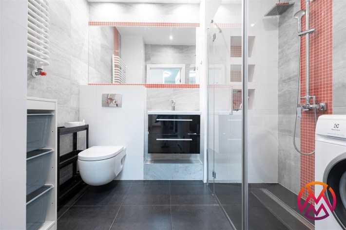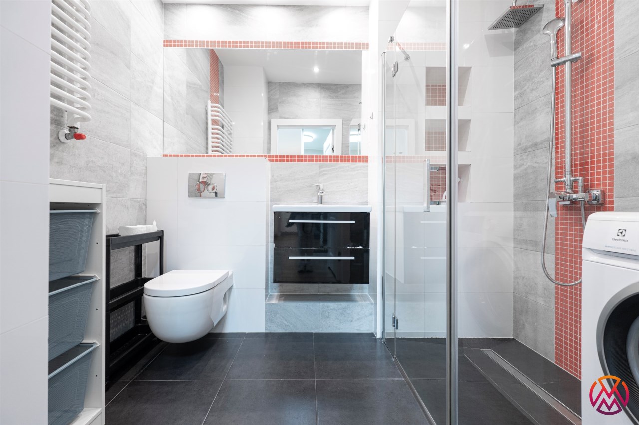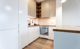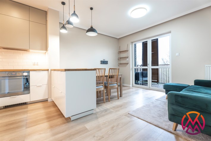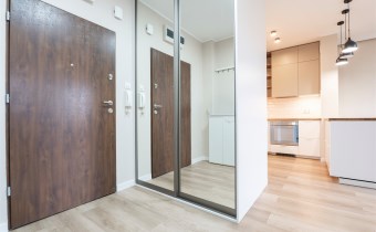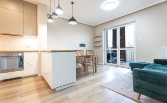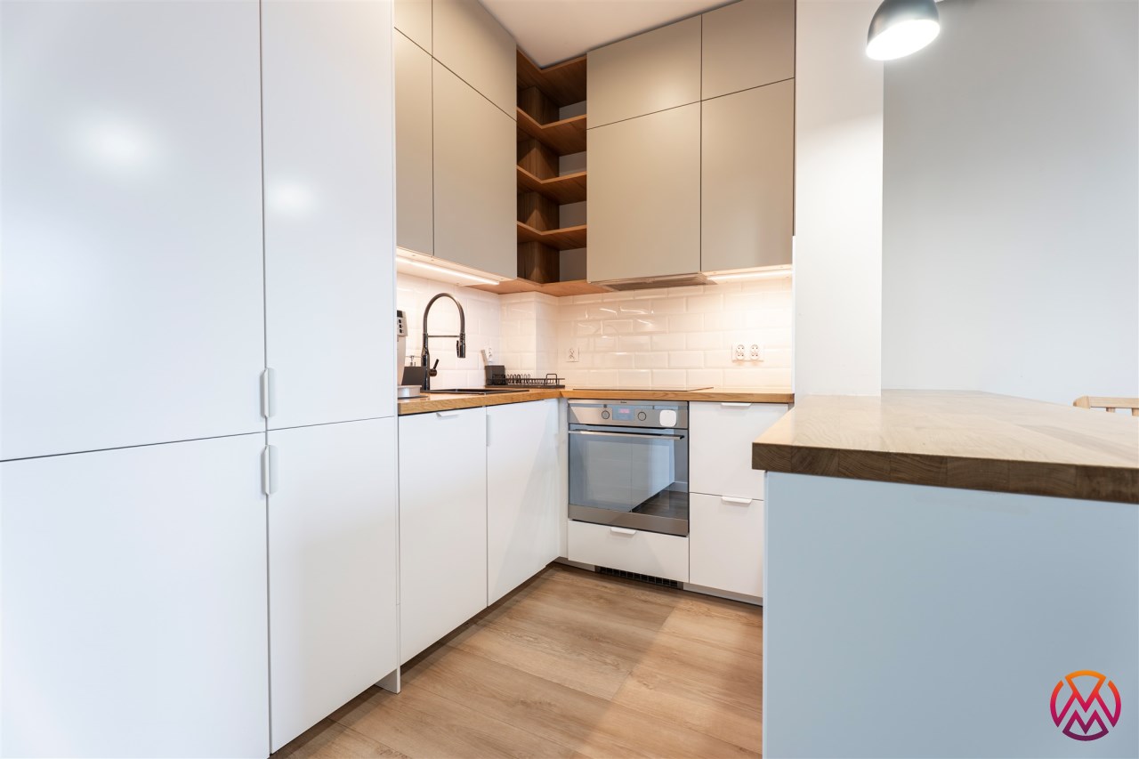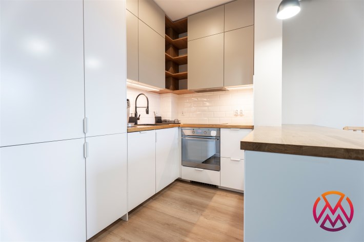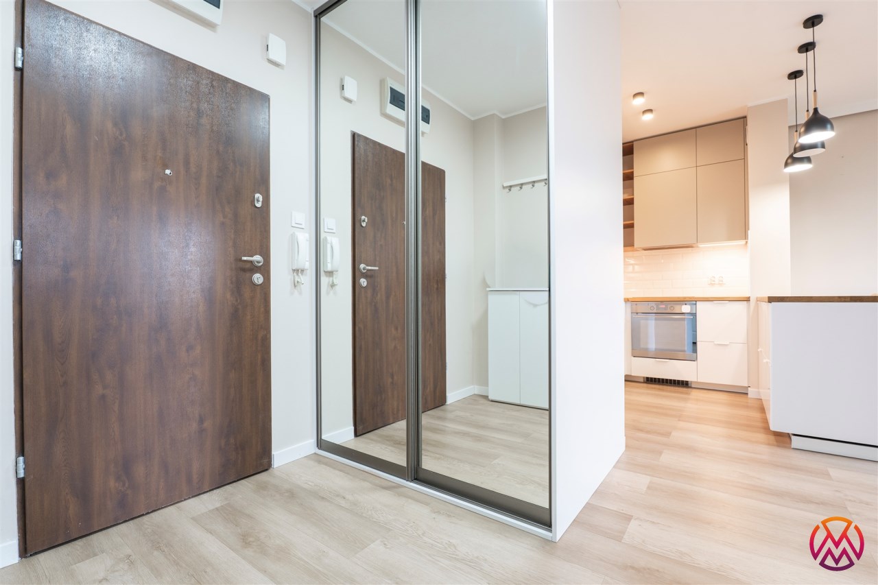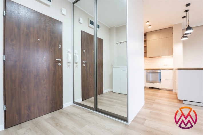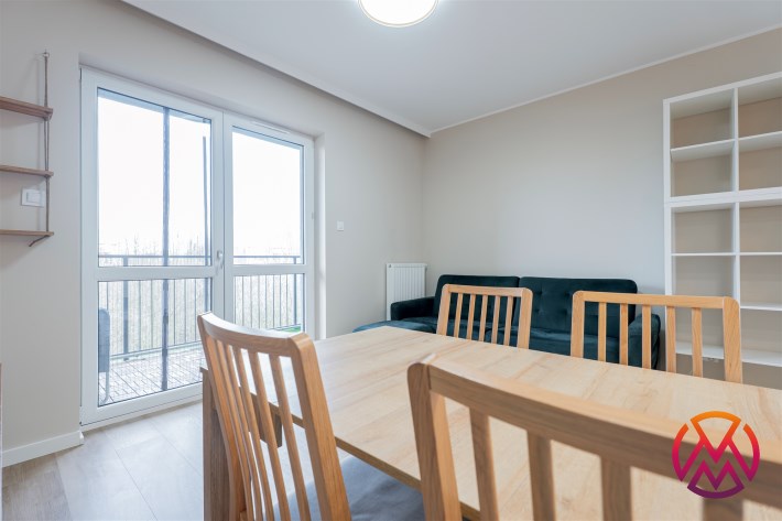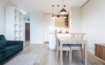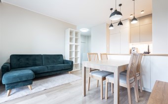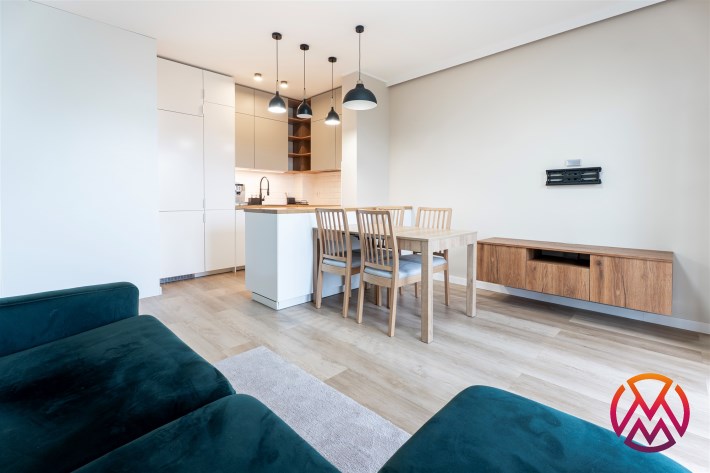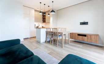 W pełni wyposażone. W salonie kanapa, stół z krzesłami, komoda, regał, szafka RTV. Przy salonie aneks kuchenny, wyposażony w niezbędne sprzęty tj. piekarnik, lodówko-zamrażarkę, zmywarkę, płytę indukcyjna i okap oraz w funkcjonalne meble kuchenne. Sypialnia posiada łóżko 160/200 z materacem oraz dużą przestronną szafę w zabudowie. W łazience prysznic, umywalka z lustrem oraz pralka. W przedpokoju dodatkowa szafa. Mieszkanie wykończone w nowoczesnym stylu, w utrzymaniu jasnej kolorystyki.