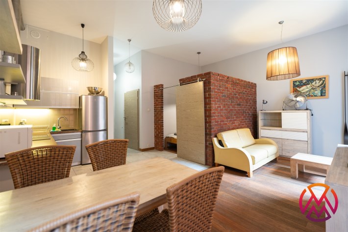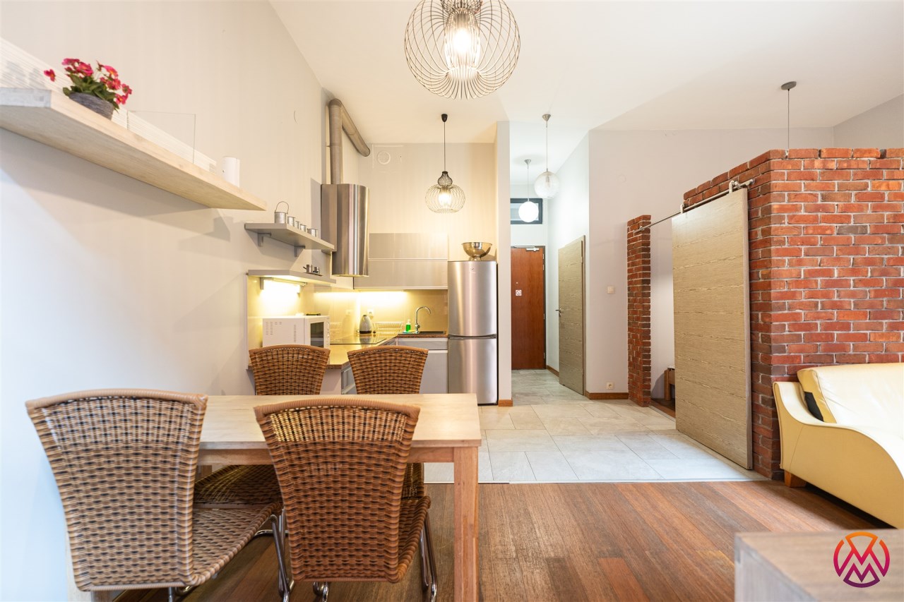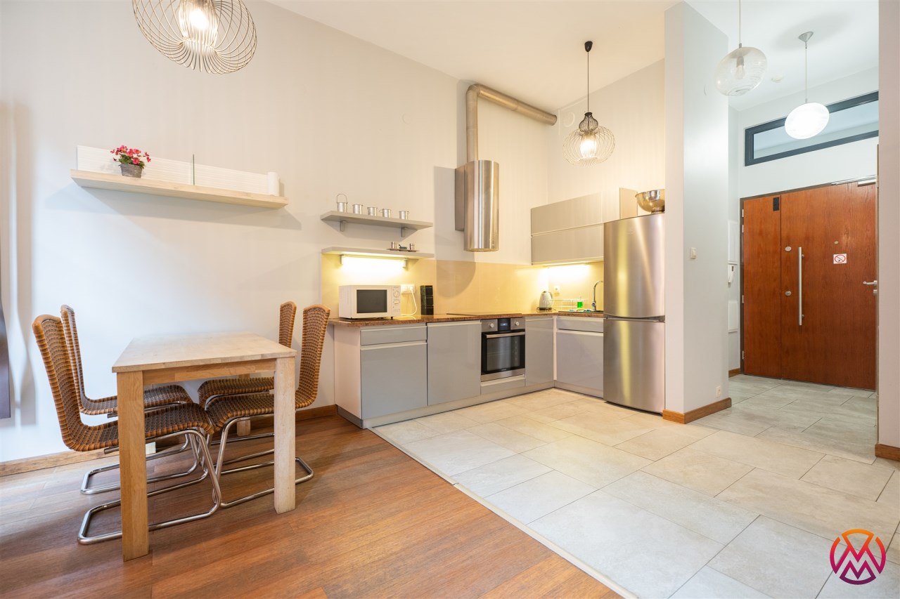 Do wynajęcia stylowy, 2-pokojowy loft o powierzchni 44,18 m², zlokalizowany na prestiżowym osiedlu przy ul. Tymienieckiego. To wyjątkowe miejsce łączy industrialny charakter historycznych zabudowań z komfortem nowoczesnego mieszkania. Teren osiedla jest pięknie zagospodarowany – znajduje się tu m.in. oczko wodne, zadbane tereny zielone oraz plac zabaw. W niedalekim sąsiedztwie znajduje się także urokliwy Park Źródliska, idealny na spacery i aktywny wypoczynek.