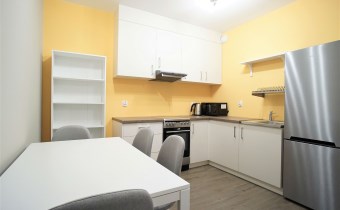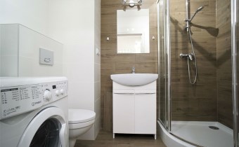 W pełni wyposażone - w obu pokojach znajdziemy wygodną rozkładaną kanapę narożną, szafkę RTV, komodę, regał oraz pakowną szafę z lustrem. Kuchnia wyposażona we wszystkie niezbędne sprzęty i akcesoria - lodówka, zamrażarka, piekarnik, płyta indukcyjna. W łazience prysznic, WC, umywalka, pralka.