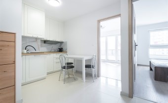 Mieszkanie słoneczne, ekspozycja okien zachodnia z widokiem na panoramę miasta. Wykończone w nowoczesnym stylu.