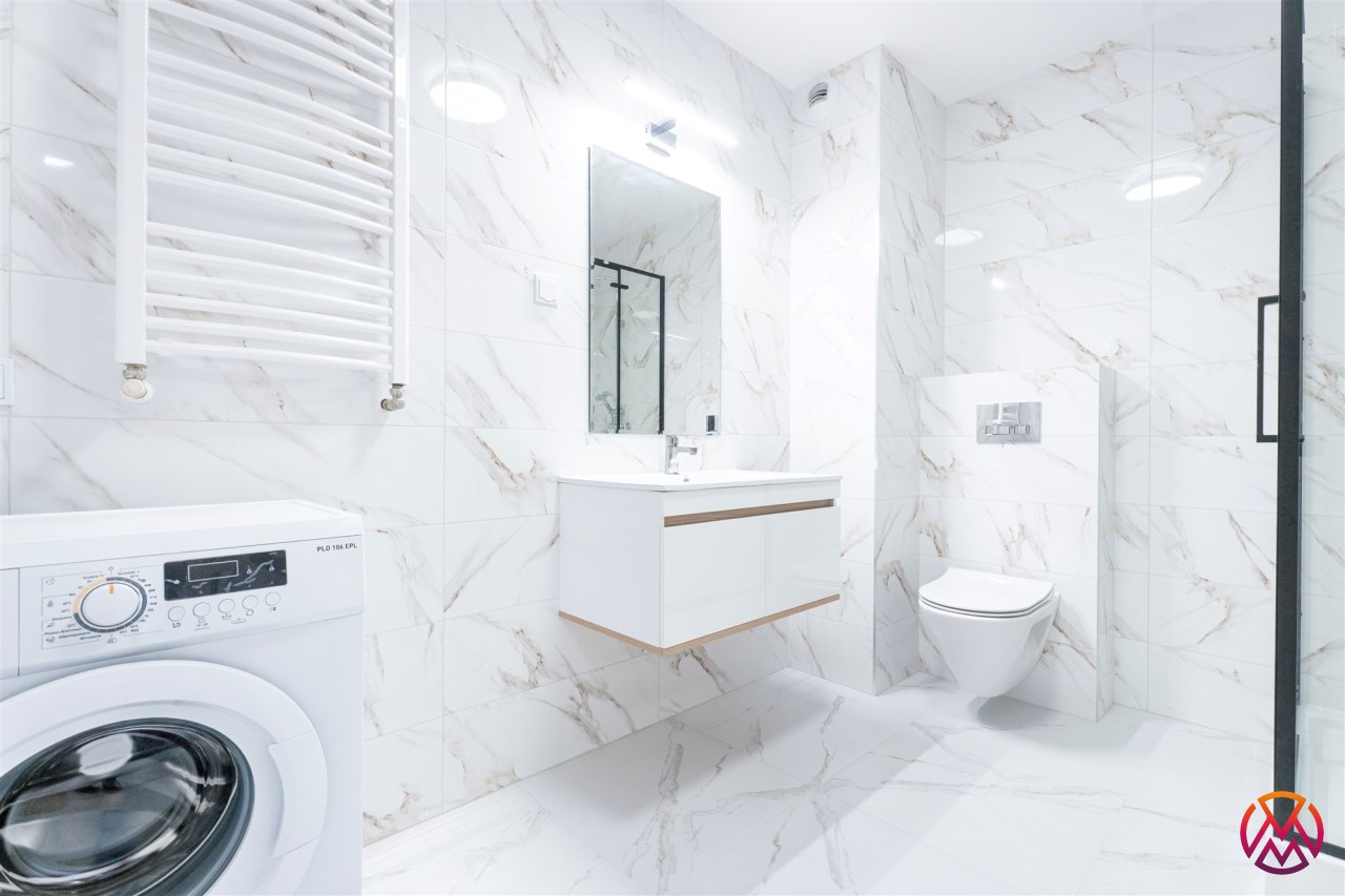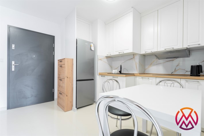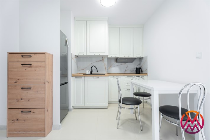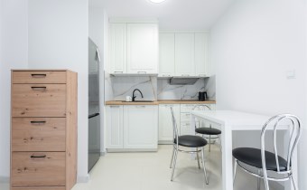 W pełni wyposażone - w salonie znajdziemy wygodną kanapę, szafkę RTV, komodę. Kuchnia wyposażona we wszystkie niezbędne sprzęty - lodówka, zamrażarka, zmywarka, płyta indukcyjna. W sypialni znajduje się podwójne łóżko z materacem, dużych rozmiarów szafa. W łazience prysznic, WC, umywalka, pralka. W przedpokoju szafka na buty.