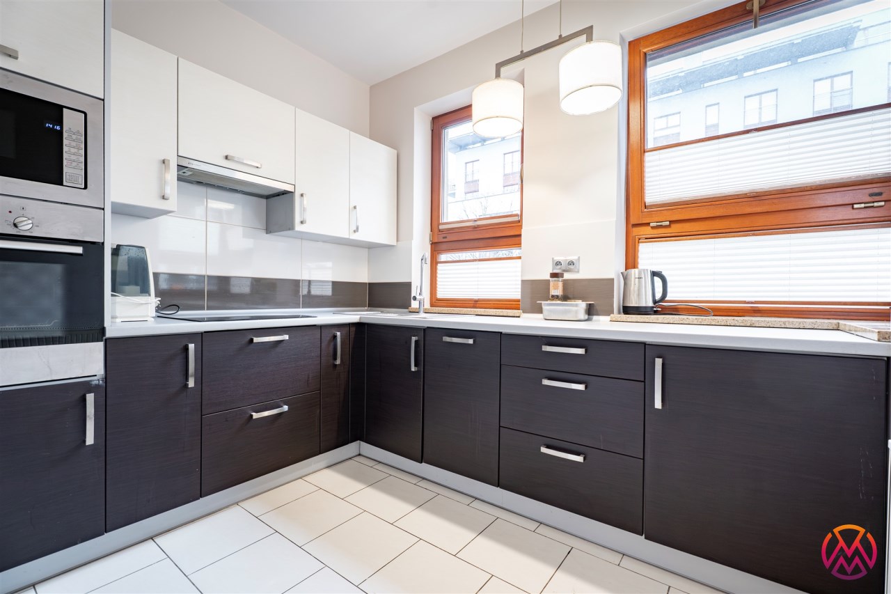 Mieszkanie idealne dla osób ceniących sobie bliskość centrum. Dobra komunikacja z pozostałymi częściami miasta. Budynek posiada recepcję oraz portiera. Mieszkanie wykończone wysokiej jakości materiałami - drewniane podłogi oraz stolarka okienna.