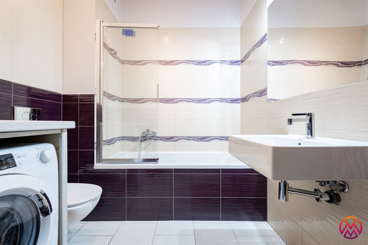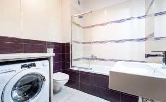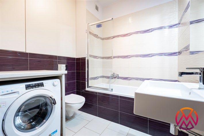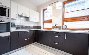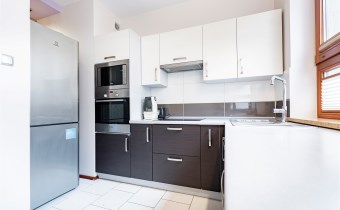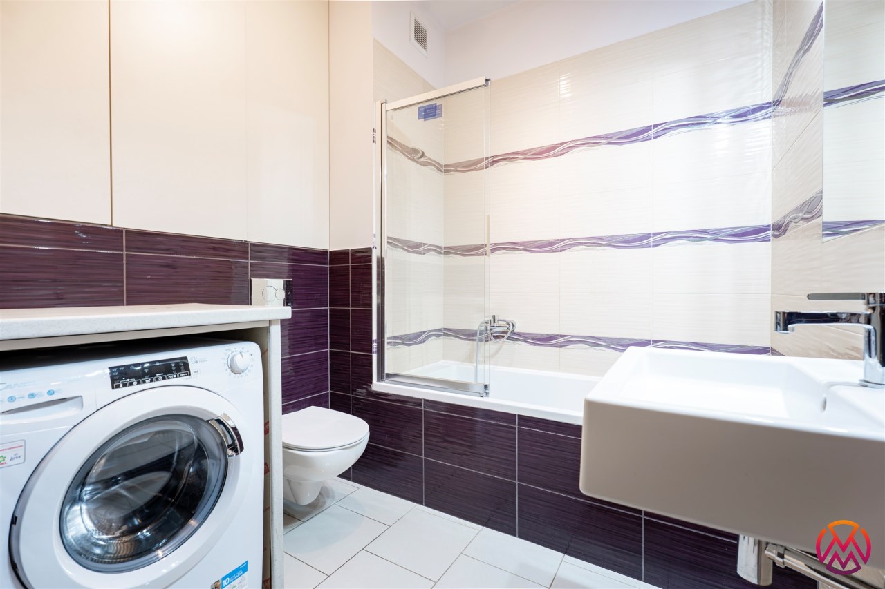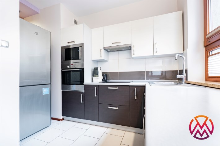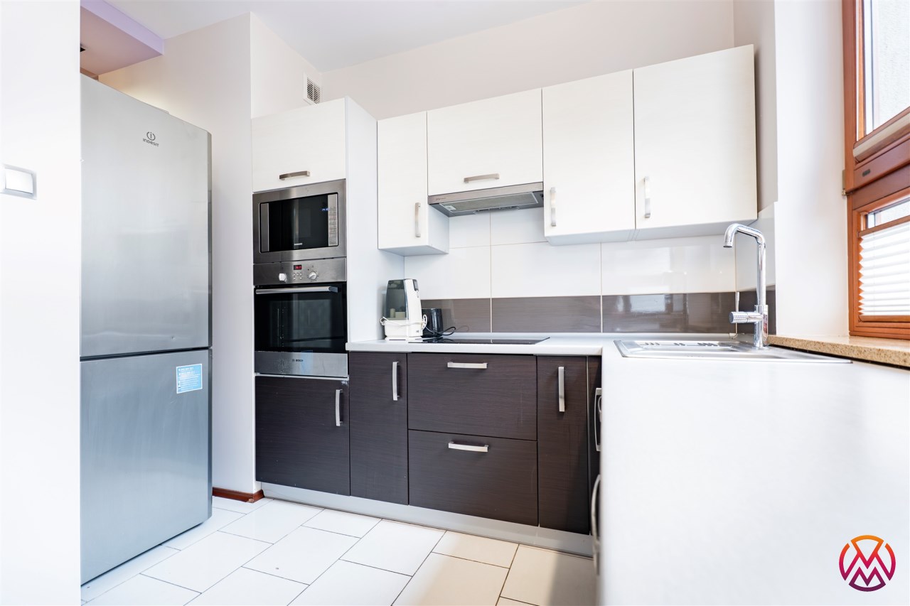 Mieszkanie całkowicie umeblowane - w salonie znajdziemy wygodną kanapę rogową, stolik kawowy, stół z krzesłami, TV. Kuchnia wyposażona we wszystkie niezbędne sprzęty m.in. lodówka, piekarnik, płyta indukcyjna, zmywarka. W sypialni znajdziemy duże, małżeńskie łóżko oraz szafę. Łazienka z prysznicem, pralką, WC i umywalką. Dodatkowo w przedpokoju miejsce znalazła szafa w zabudowie.