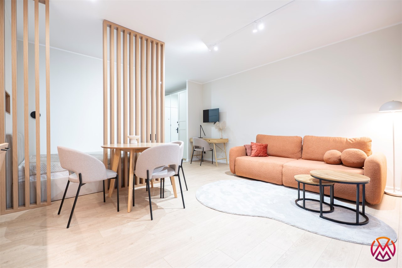 Mieszkanie wykończone w nowoczesnym stylu, przez architekta wnętrz. Wszystkie sprzęty oraz meble nowe. Budynek zawiera zabytkowe elementy dawnej fabryki Scheiblera. Idealny dla osób ceniących sobie oryginalność.