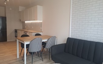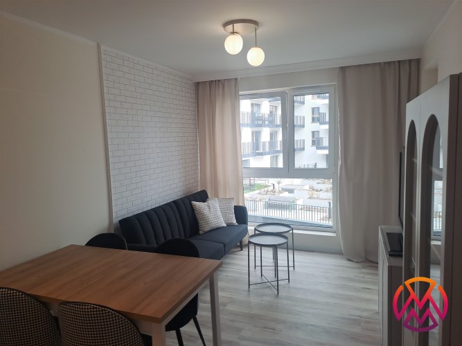Mieszkanie składa się z 2 pokoi - salonu połączonego z aneksem kuchennym, sypialni oraz łazienki z WC. Istnieje możliwość wynajęcia miejsca parkingowe w garażu podziemnym. Niewątpliwą zaletą apartamentu jest loggia z wyjściem z każdego pokoju, z widokiem na patio oraz spokojną okolicę.