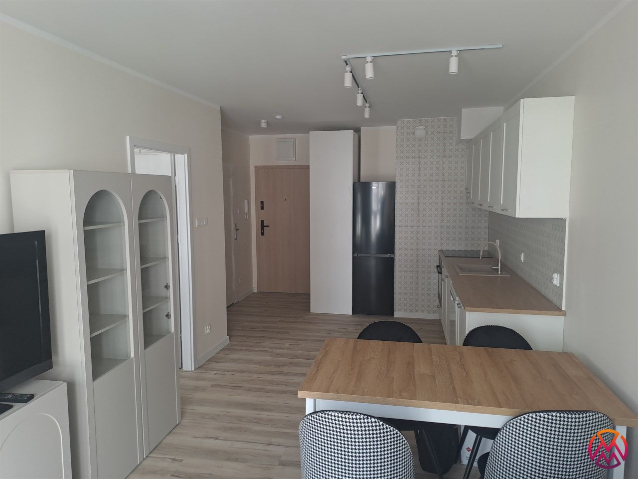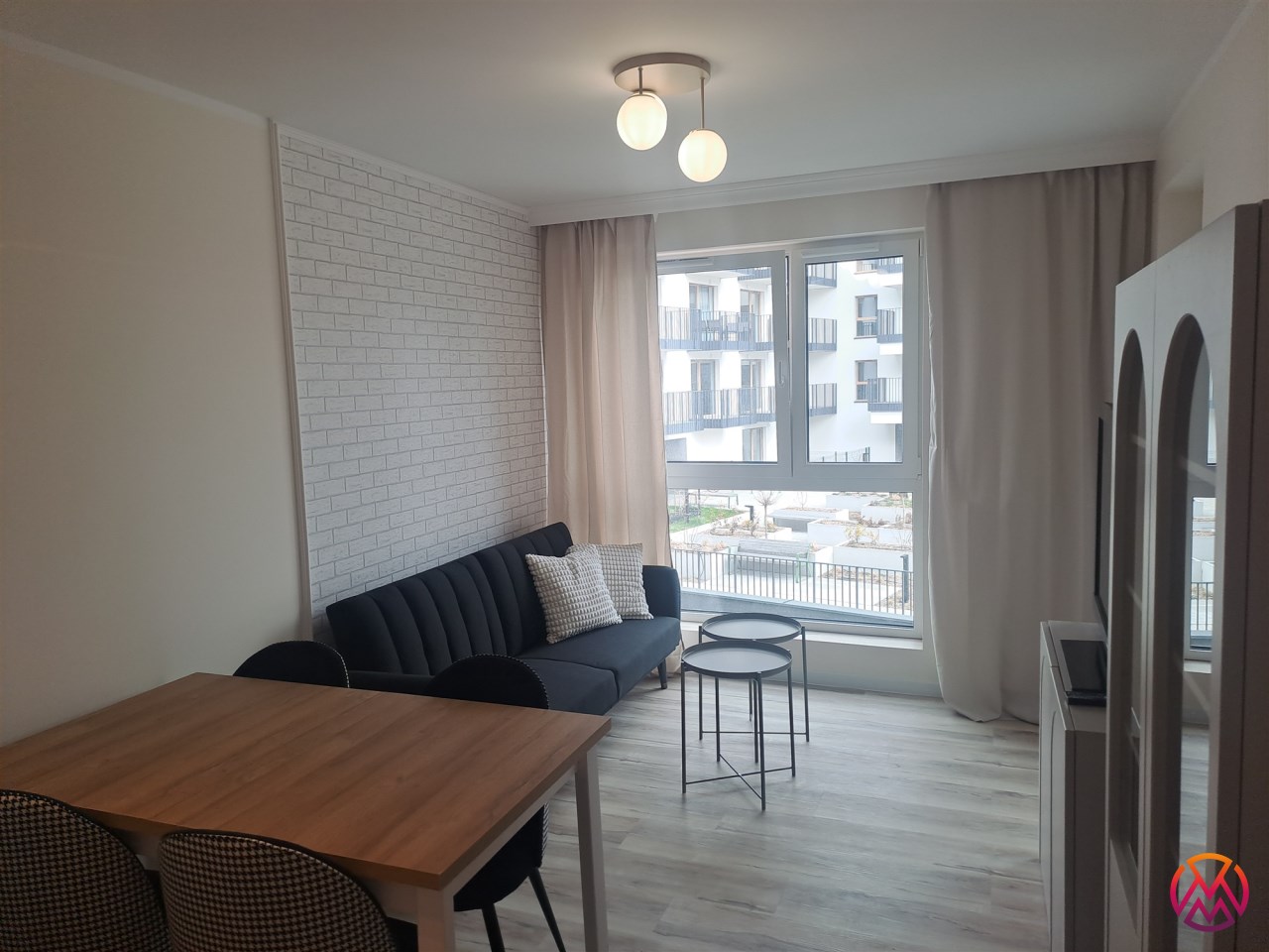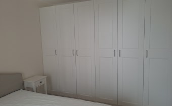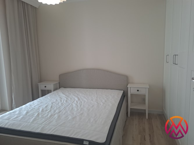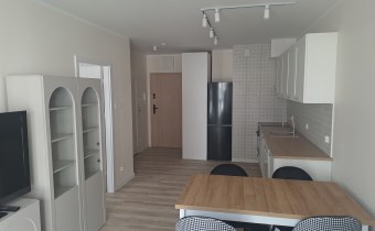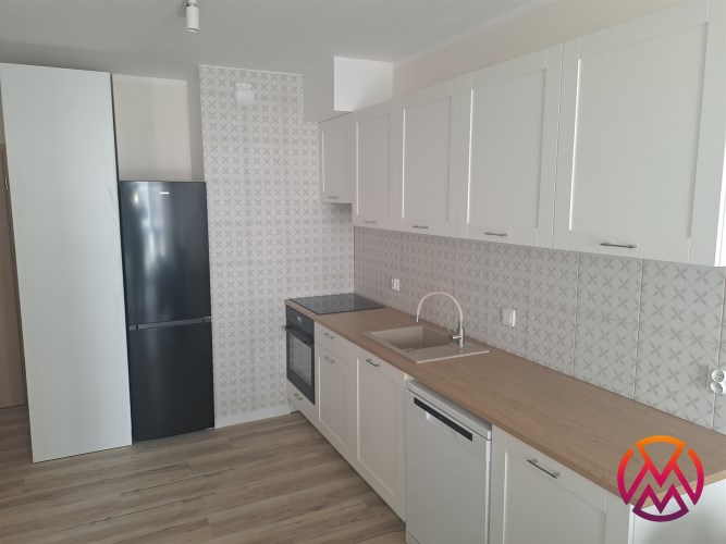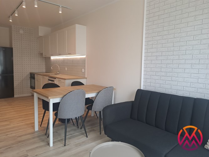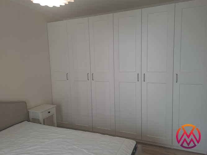 Bardzo przestronny apartament do pierwszego zamieszkania, w pełni umeblowany i wyposażony. W salonie znajduję się wygodna rozkładana kanapa, szafka RTV, telewizor, stół z krzesłami, stoliki kawowe oraz gustowna witryna. W aneksie kuchennym znajdziemy lodówko-zamrażarkę, piekarnik, zmywarkę, płytę indukcyjną, okap. Sypialnia wyposażona jest wygodne dwuosobowe łóżko o szerokości 160 cm, biurko z krzesłem, szafki nocne oraz bardzo pojemną szafą na całej powierzchni ściany o pojemności 3 m2.