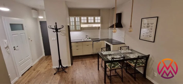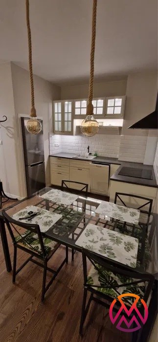 Mieszkanie w pełni umeblowane. W salonie znajdziemy wygodną kanapę, szafkę RTV, telewizor, stolik kawowy, regał oraz stół z krzesłami. W sypialni mieści się podwójne łóżko z materacem oraz szafa. Funkcjonalna kuchnia została wyposażona we wszystkie niezbędne sprzęty: lodówko-zamrażarkę, zmywarkę, płytę indukcyjną, piekarnik elektryczny, okap. Łazienka wraz z WC, w której znajdziemy prysznic typu walk-in, umywalkę oraz pralkę. W przedpokoju znajduje się pakowna szafa w zabudowie
