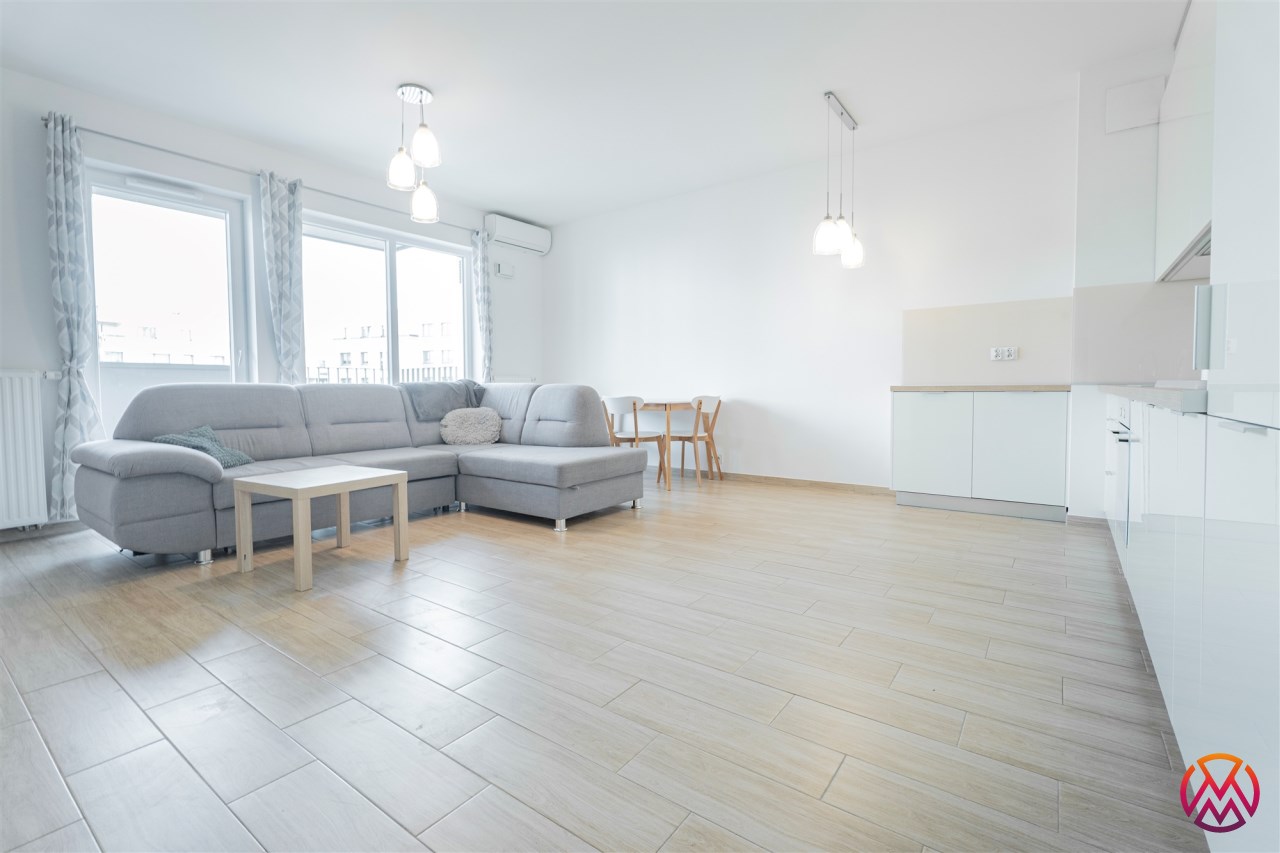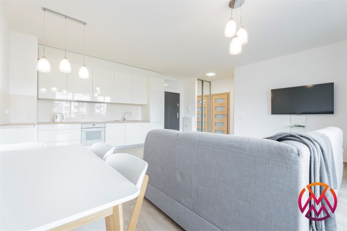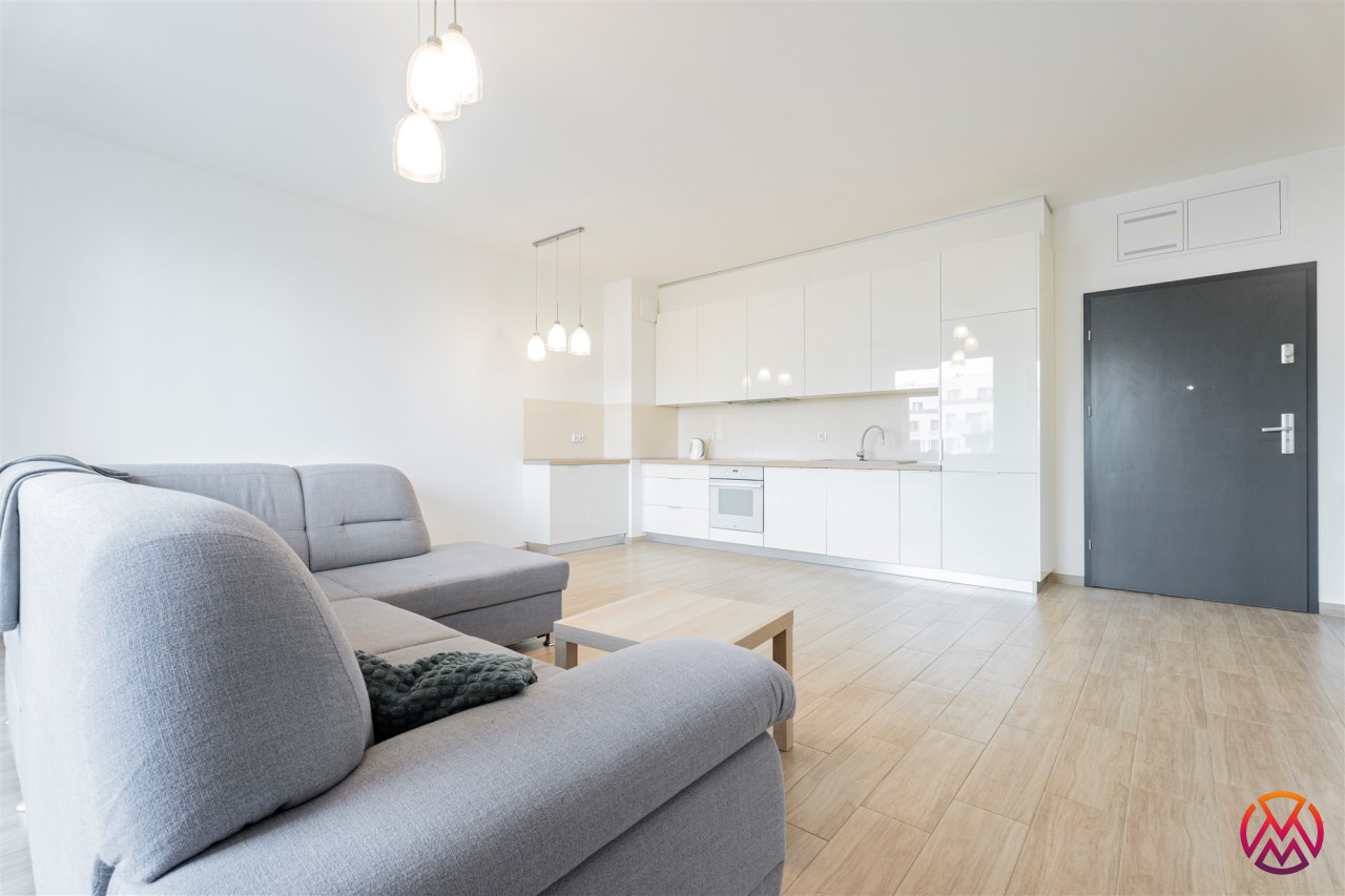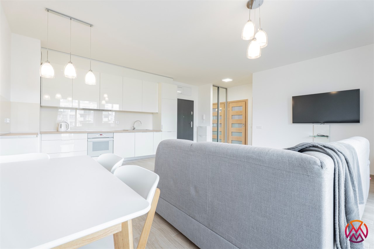 W pełni umeblowane, gotowe do zamieszkanie. W salonie znajduje się wygodna rozkładana kanapa, stolik kawowy, szafka RTV, TV oraz stół z krzesłami. Kuchnia została wyposażona we wszystkie niezbędne sprzęty - lodówka z zamrażarką, piekarnik, płyta indukcyjna, okap, zmywarka, mikrofala, a także komplet sztućców i naczyń. Sypialnia została wyposażona w podwójne łóżko z materacem, pakowną szafę oraz biurko. Łazienka z prysznicem, umywalką oraz pralką. Dodatkowo mieszkanie balkon z widokiem na patio.