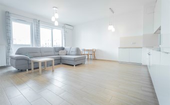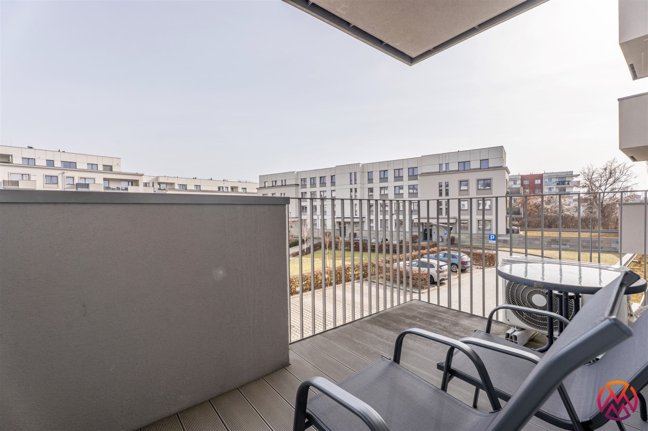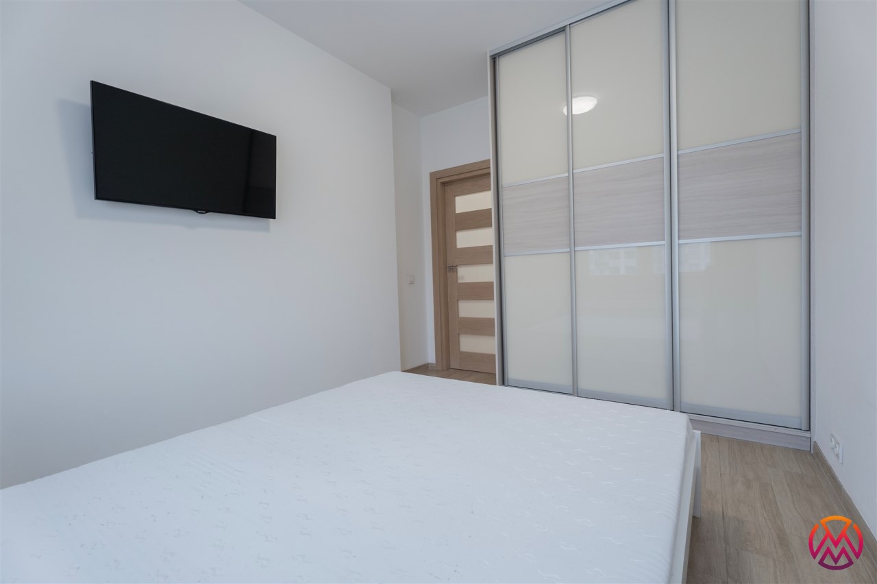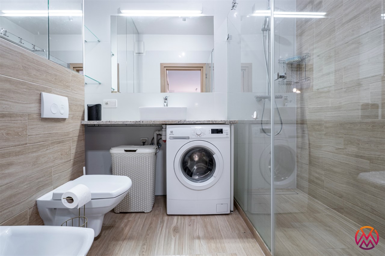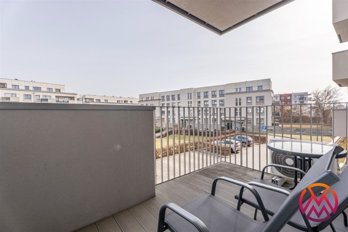 W pełni umeblowane, gotowe do zamieszkanie. W salonie znajduje się wygodna rozkładana kanapa, stolik kawowy, szafka RTV, TV oraz stół z krzesłami. Kuchnia została wyposażona we wszystkie niezbędne sprzęty - lodówka z zamrażarką, piekarnik, płyta indukcyjna, okap, zmywarka, mikrofala, a także komplet sztućców i naczyń. Sypialnia została wyposażona w podwójne łóżko z materacem, pakowną szafę oraz biurko. Łazienka z prysznicem, umywalką oraz pralką. Dodatkowo mieszkanie balkon z widokiem na patio.