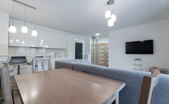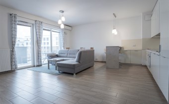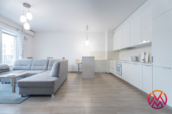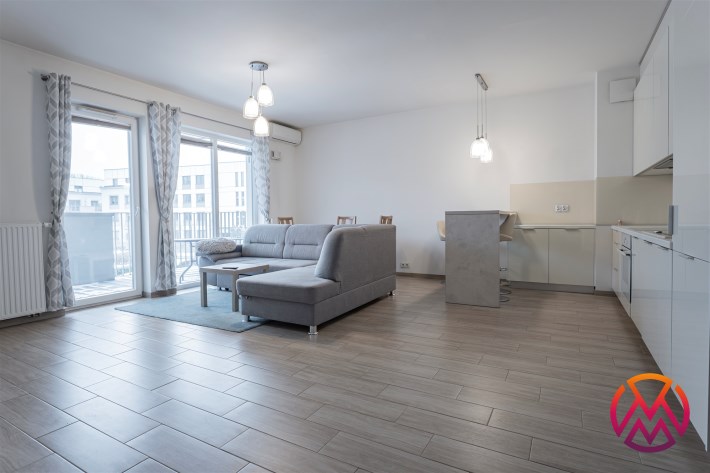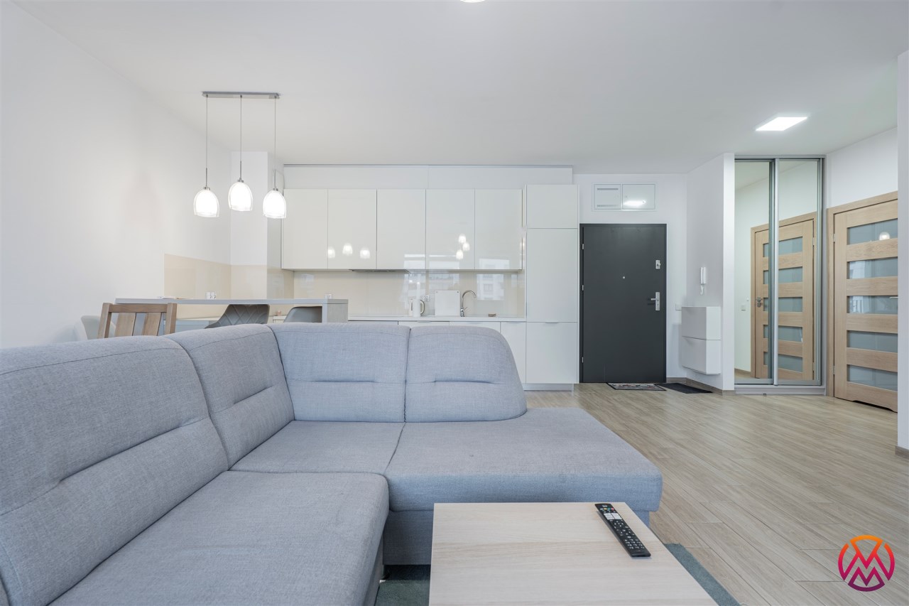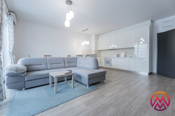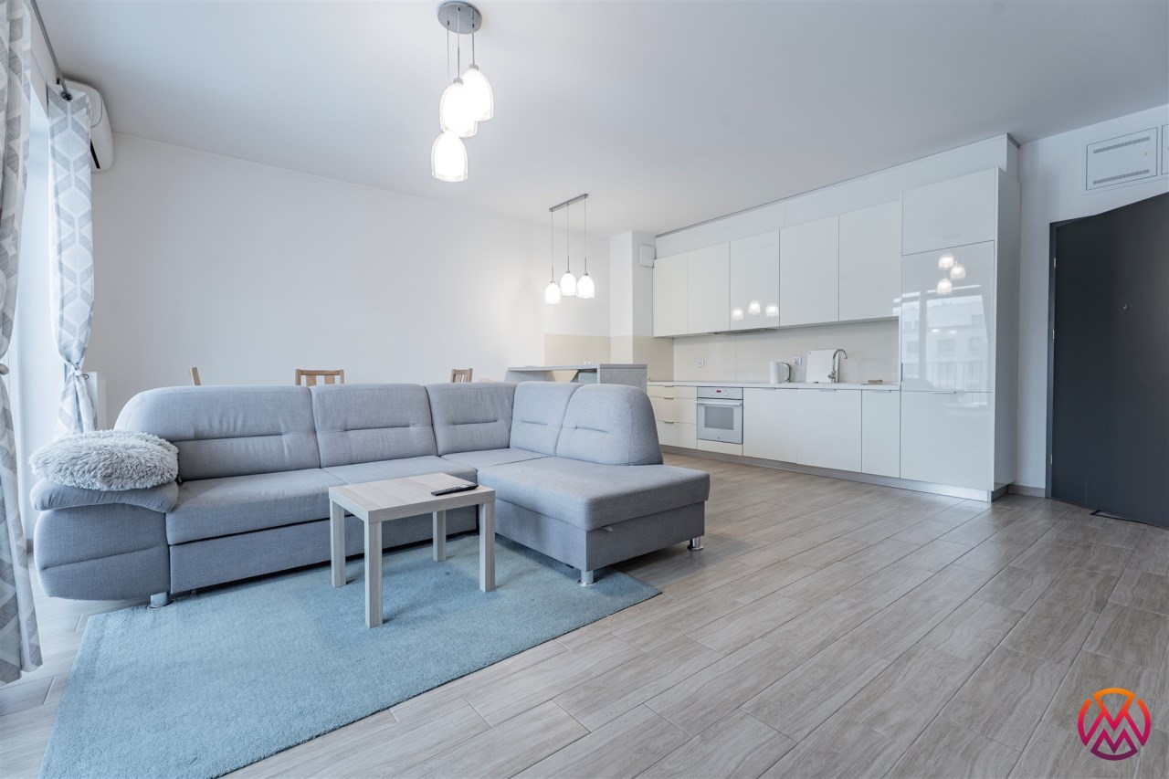 W pełni umeblowane, gotowe do zamieszkanie. W salonie znajduje się wygodna rozkładana kanapa, stolik kawowy, szafka RTV, TV oraz stół z krzesłami. Kuchnia została wyposażona we wszystkie niezbędne sprzęty - lodówka z zamrażarką, piekarnik, płyta indukcyjna, okap, zmywarka, mikrofala, a także komplet sztućców i naczyń. Sypialnia została wyposażona w podwójne łóżko z materacem, pakowną szafę oraz biurko. Łazienka z prysznicem, umywalką oraz pralką. Dodatkowo mieszkanie balkon z widokiem na patio.