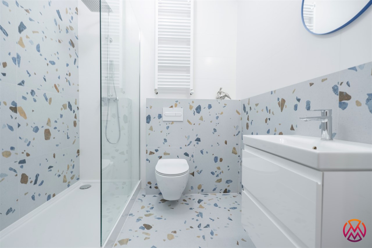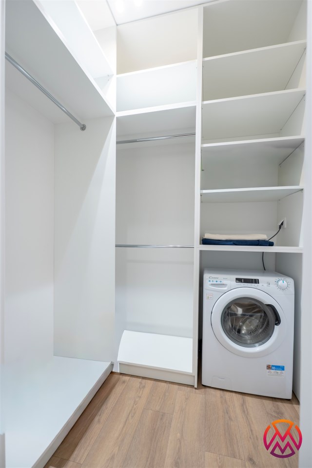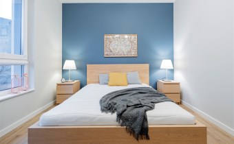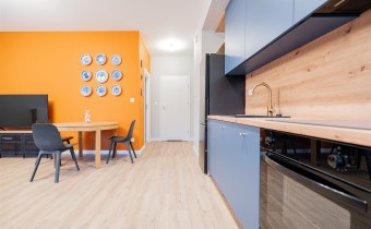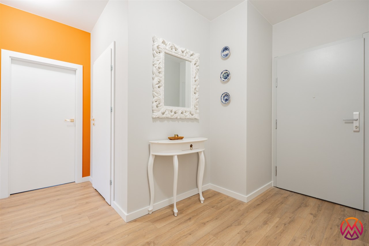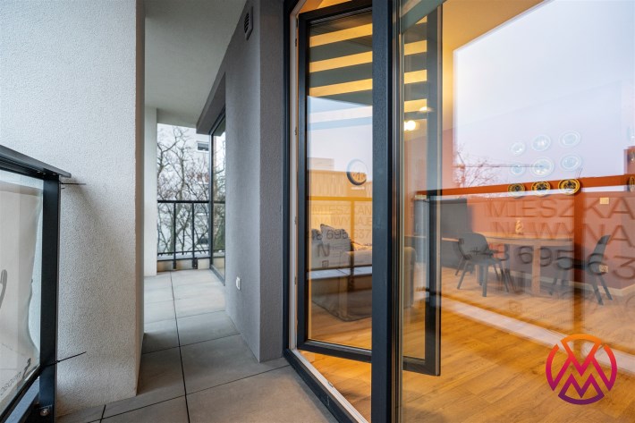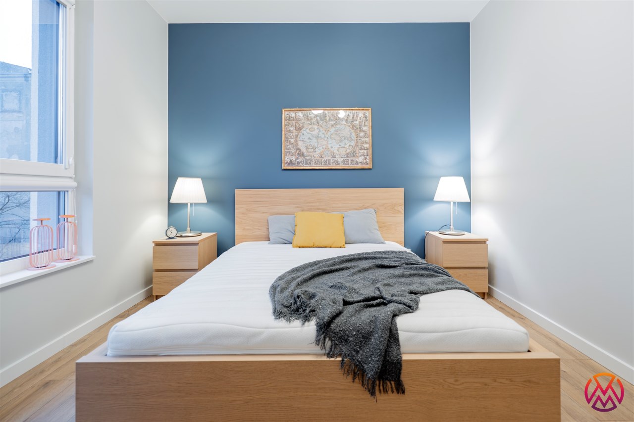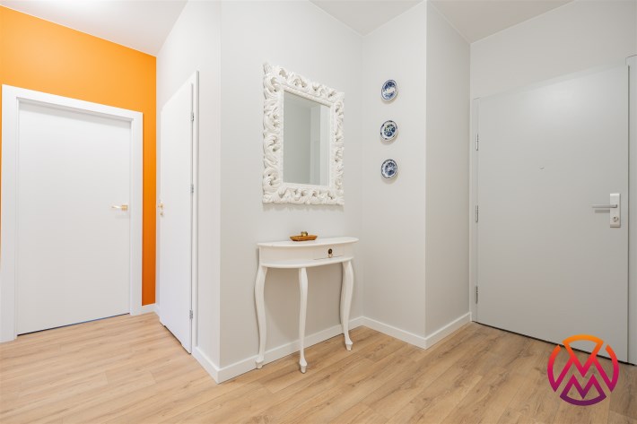 Apartament o powierzchni ok. 53 m2 składa się z salonu z aneksem kuchennym, sypialni, garderoby, przedpokoju oraz łazienki z WC. Do dyspozycji najemcy siłownia w budynku i strefa coworkingowa ze strefą do pracy.