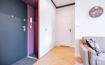 Łazienka została wykończona w neutralnych, jasnych kolorach. Na podłodze został położony gres, ściany zdobią płytki Tubądzin, armatura Omnires, do dyspozycji najemcy pralko-suszarka. Łazienka wraz z WC, dodatkowo kabina walk in, przesuwna, umywalka z szafką, oraz liczne schowki w zabudowie.