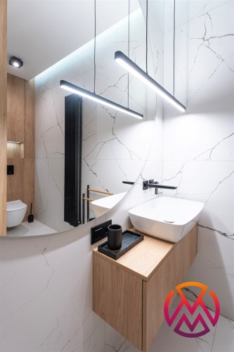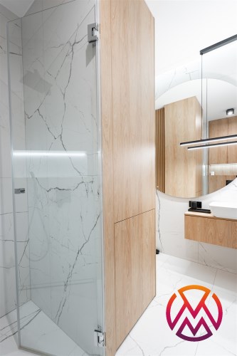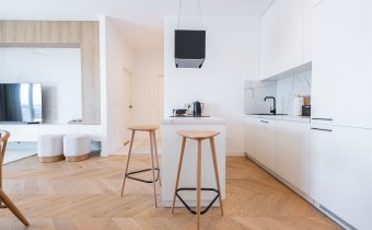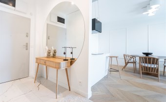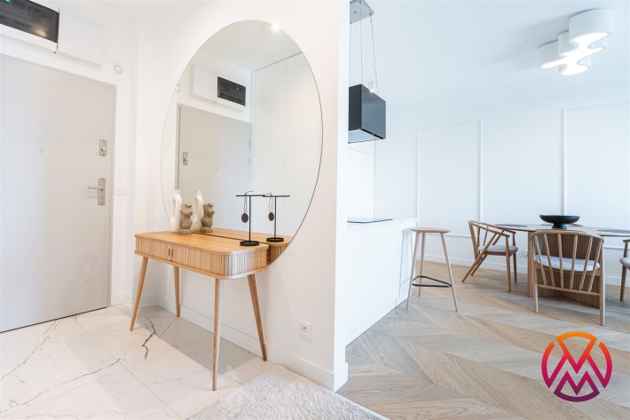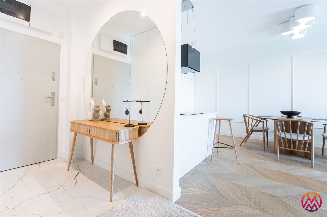 Wysoka jakość wykończenia - meble robione na wymiar przez stolarza, drewniana podłoga (jodła francuska), liczne punkty świetlne. Mieszkanie utrzymane w jasnej tonacji kolorystycznej, dzięki czemu jest bardzo przytulne i słoneczne.