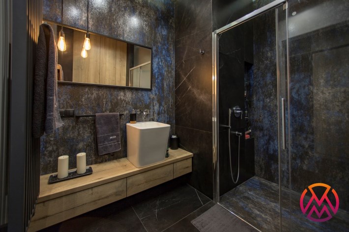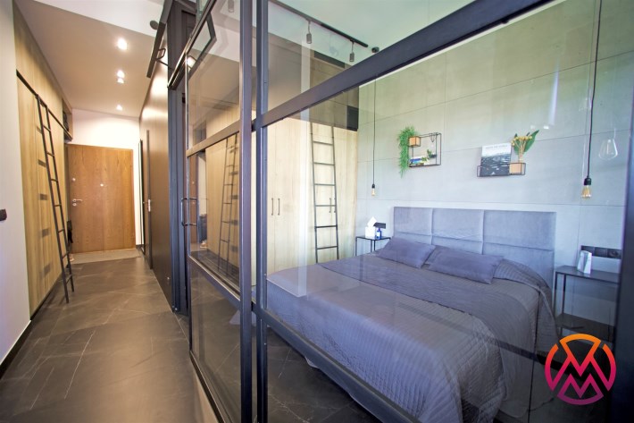 W sypialni łóżko dwuosobowe, z komfortowym wygodnym materacem oraz pojemna szafa. Łazienka z kabiną prysznicową typu walk-in. Wysokie sufity nadają wszystkim pomieszczeniom wyjątkowego charakteru. Lokal ekskluzywnie wykończony, doskonałej jakości podłoga i stolarka meblowa. Drzwi, armatura, gustowne oświetlenie, wszystko bardzo wysokiej jakości.