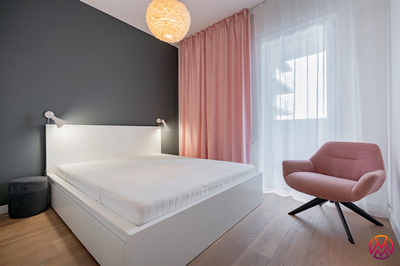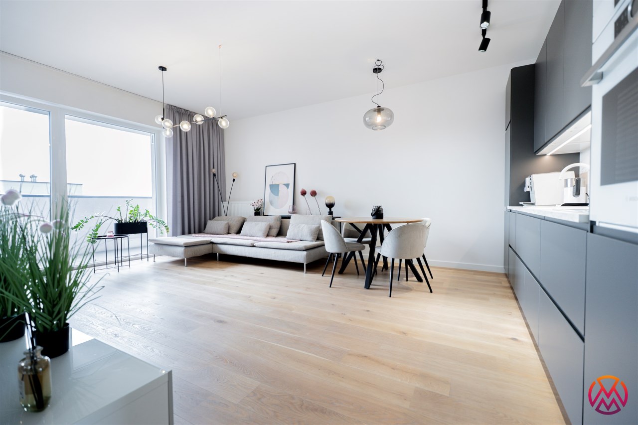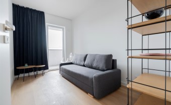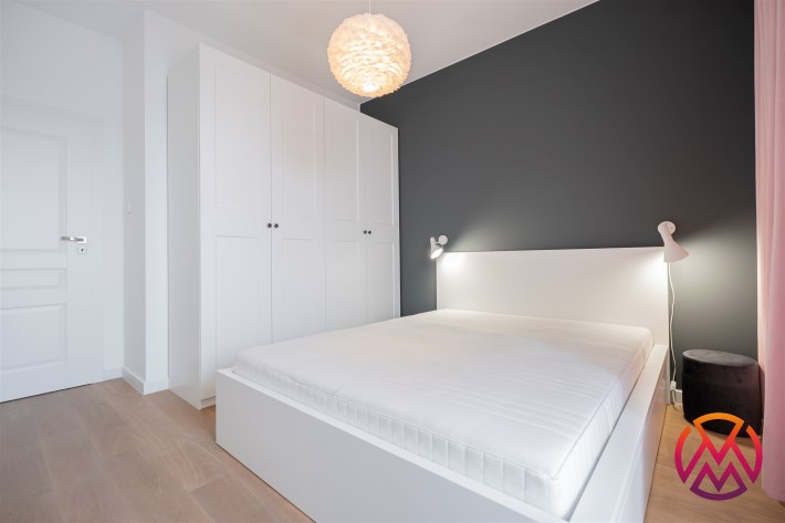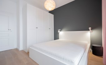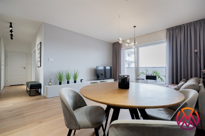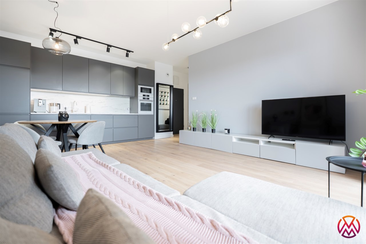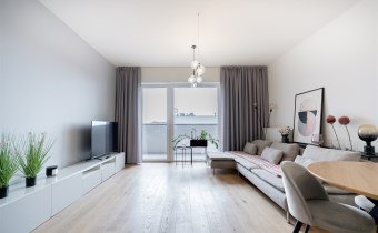 Mieszkanie zostało urządzone w nowoczesnym stylu z wykorzystaniem wysokiej jakości materiałów. Neutralna kolorystyka i przemyślana zabudowa nadają wnętrzu elegancji i harmonii.