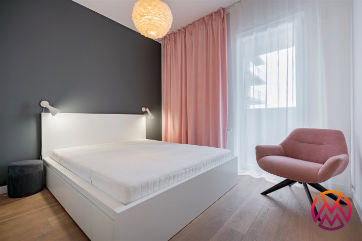 Sypialnie są jasne i ciche, z każdej z nich jest wyjście na taras. W głównej sypialni znajdziemy podwójne łóżko z materacem, szafę, szafki nocne oraz fotel. Druga sypialnia wyposażona została w rozkładaną kanapę, regał oraz stoliki kawowe.