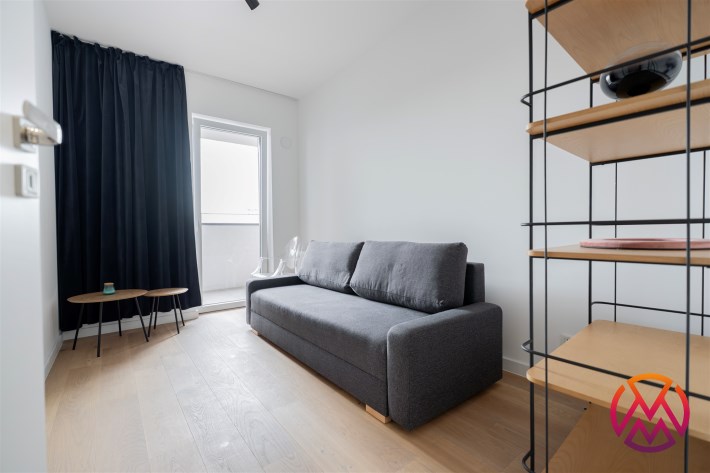 Salon z aneksem kuchennym i wyjściem na duży, słoneczny taras (15m2)