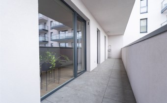 Na 6 piętrze znajduje się prywatne patio dostępne dla mieszkańców – idealne miejsce do relaksu z widokiem na panoramę miasta.
