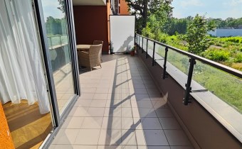 Mieszkanie składa się z 3 pokoi - przestronnego salonu z aneksem kuchennym, dwóch sypialni, łazienki razem z WC, pomieszczenia gospodarczego oraz przedpokoju. Dużym atutem mieszkania jest obszerny taras z widokiem na tereny zielone.