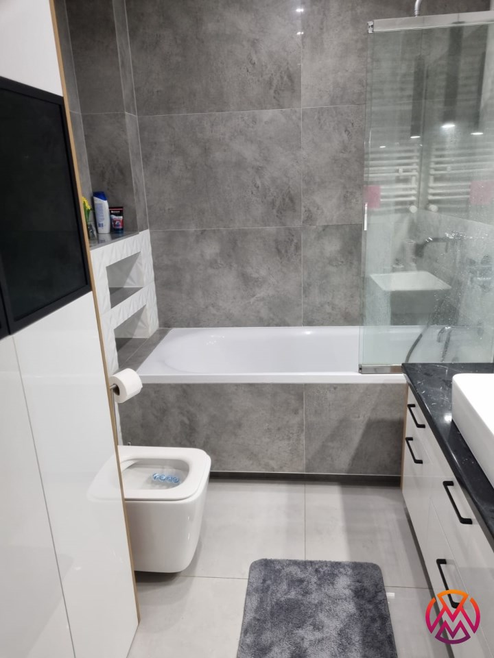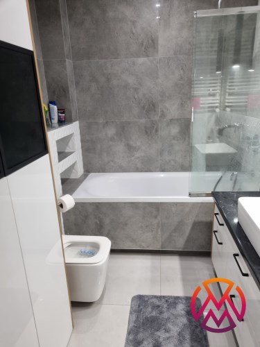 W sypialni znajduje się dwuosobowe łóżko oraz pakowna szafa. Drugi pokój może zostać zaadaptowany przez najemcę na gabinet lub drugą sypialnię. Toaleta z wanną z funkcją prysznica, umywalką, pralką oraz WC. Dodatkowo w przedpokoju znajduje się szafa z licznym miejscem do przechowywania.