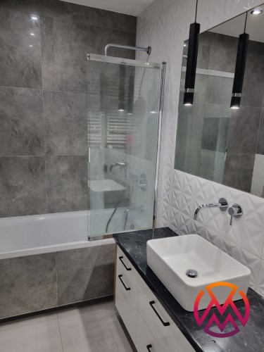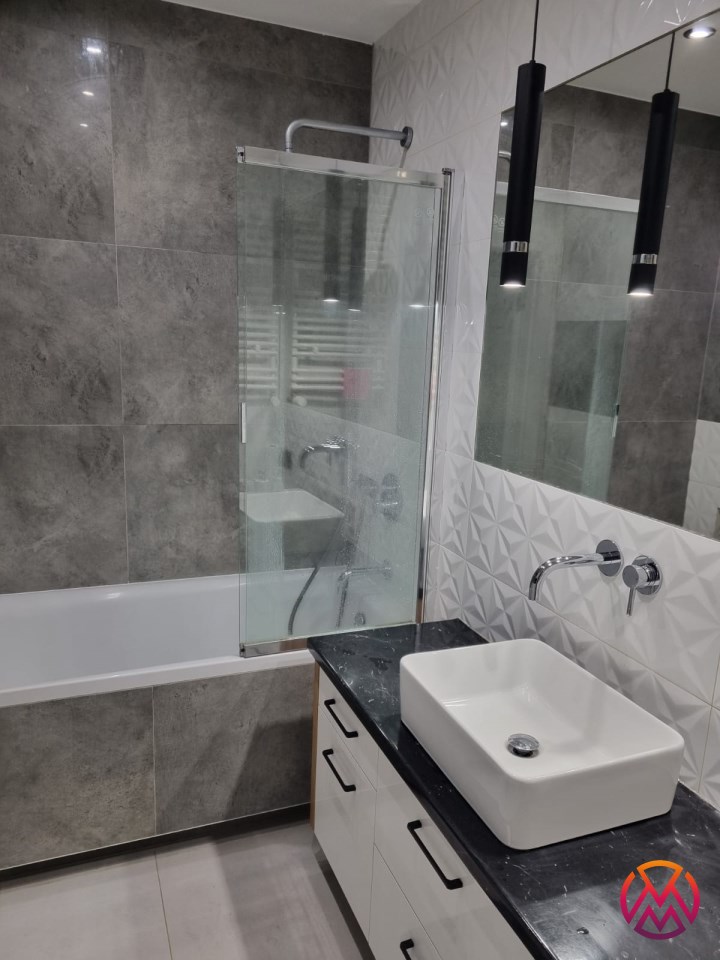 Apartament składa się z 3 pokoi: salonu z aneksem kuchennym, 2 sypialni, łazienki razem z WC oraz przedpokoju. Dodatkowym atutem jest przestronny taras z wystawą zachodnią oraz fakt, że mieszkanie nie jest usytuowane bezpośrednio przy ul. Mickiewicza. Całość wykończona bardzo gustownie przy użyciu materiałów wysokiej jakości. Mieszkanie klimatyzowane. Na terenie osiedla znajduje się rowerownia.