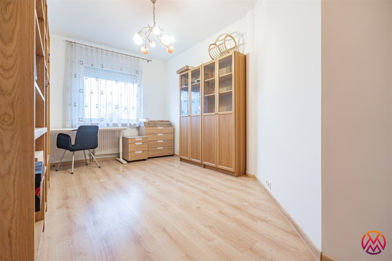 Mieszkanie składa się z: przestronnego salonu połączonego z aneksem kuchennym, w którym znajdziemy również pomieszczenie gospodarcze (spiżarnię), 3 sypialni (wyposażenie do uzgodnienia - mogą zostać one zaadaptowane na sypialnie, bądź gabinet), łazienka z wanną i prysznicem, oddzielna toaleta, przedpokój z bardzo pojemną szafą w zabudowie. Dodatkowym atutem mieszkania jest obszerny taras, z którego część została wydzielona na balkon zimowy.