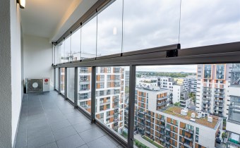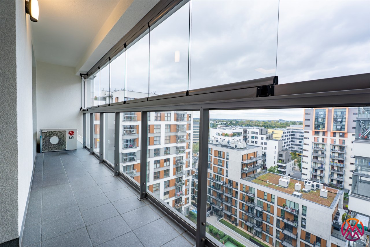 Do wynajęcia 2-pokojowy apartament o powierzchni ok. 55 m², zlokalizowany na 11. piętrze, ze świetnym widokiem na patio, wystawą okienną na zachód, w nowoczesnym budynku z dwiema cichobieżnymi windami. Budynek posiada lobby z całodobową ochroną oraz piękne, zielone patio z fontannami, które sprzyja relaksowi.