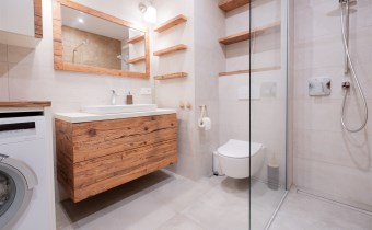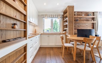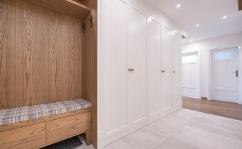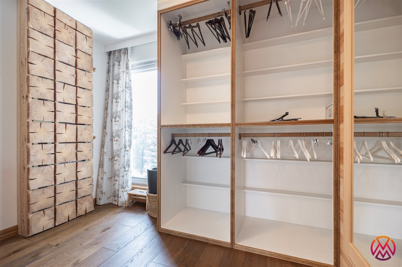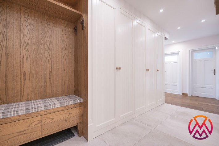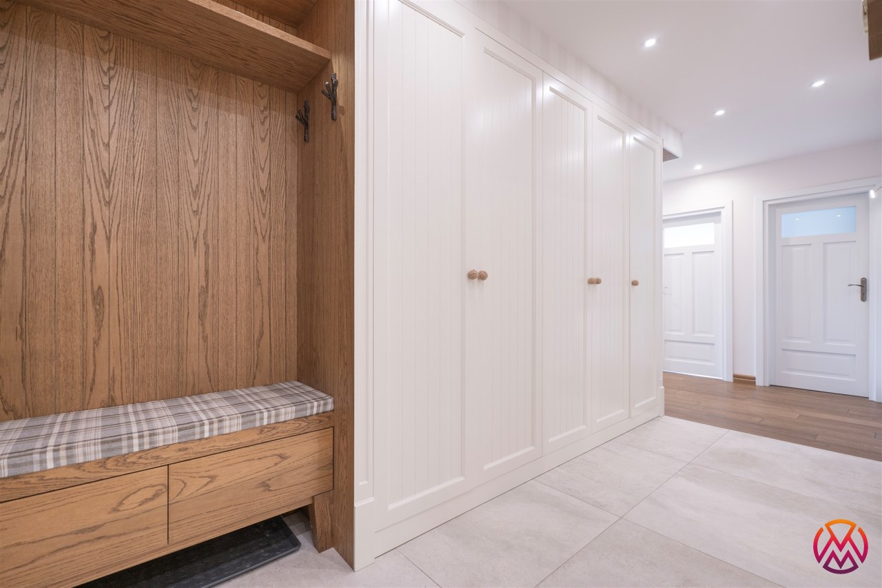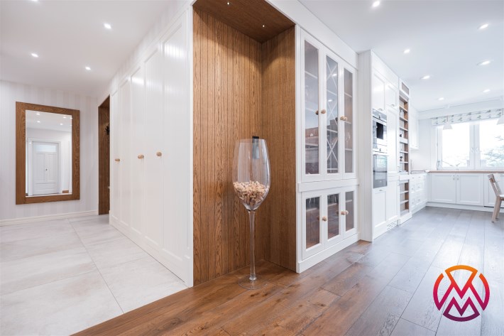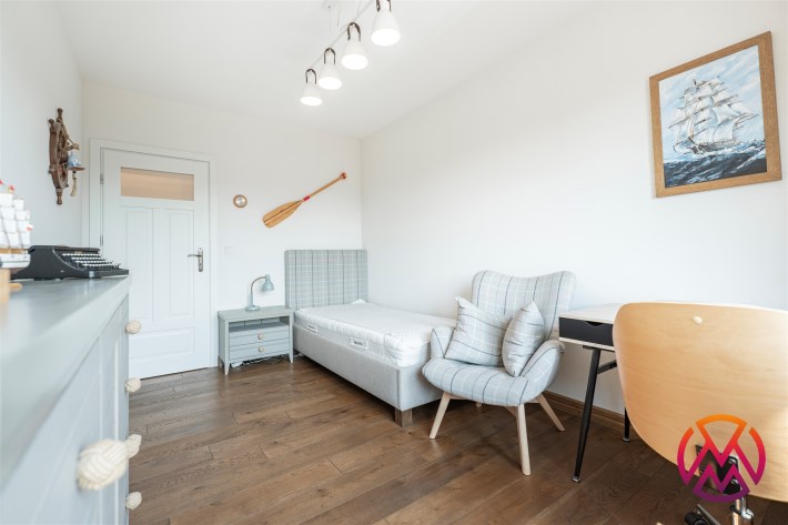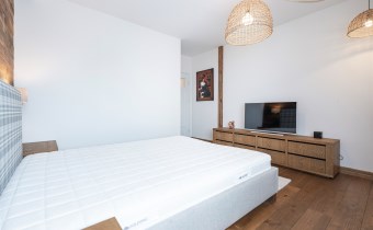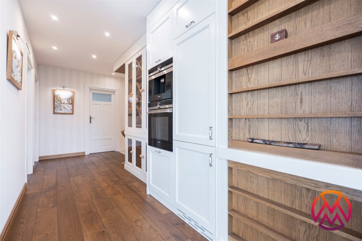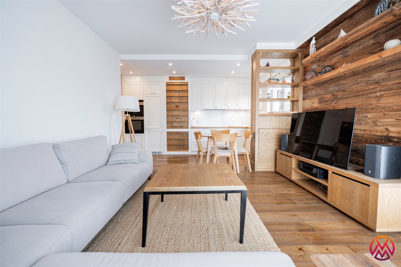 Mieszkanie o przemyślanym rozkładzie, mieści się w nowoczesnym apartamentowcu i charakteryzuje się bardzo wysokim standardem wykończenia. Wnętrza są niezwykle przytulne i komfortowe, a to za sprawą dominujących elementów drewnianych oraz eleganckiej drewnianej podłogi, ze specjalnie suszonego, ponad 100-letniego drewna, które nadają wnętrzom ciepła i klasy.